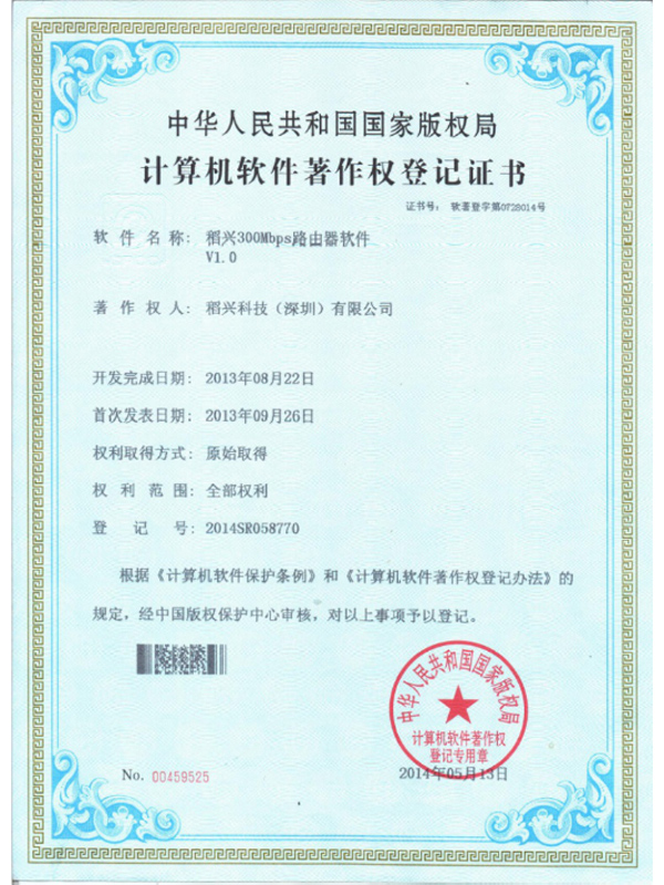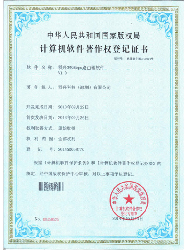 計算機軟件著作權登記證書